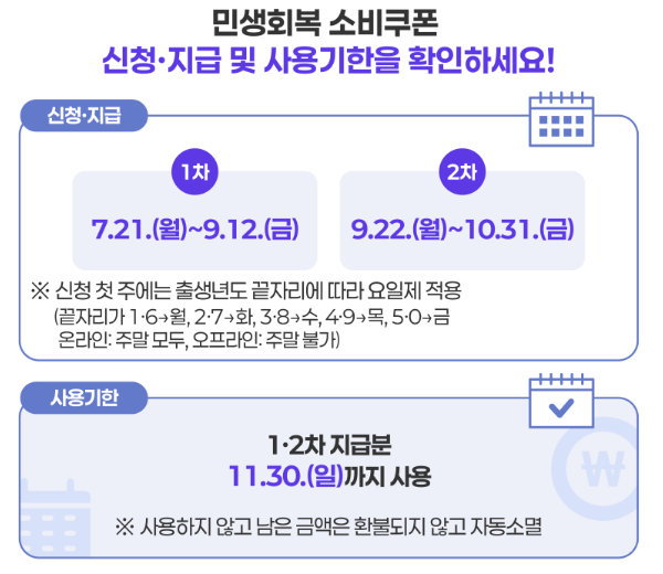 민생회복 소비쿠폰은 1차와 2차로 나누어 신청할 수 있습니다.