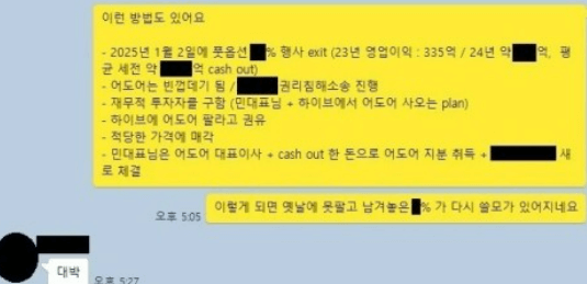 (그 지분에 대한 권리를) 행사할 수 없어서 하이브에 영원히 묶여 있어야 한다”
